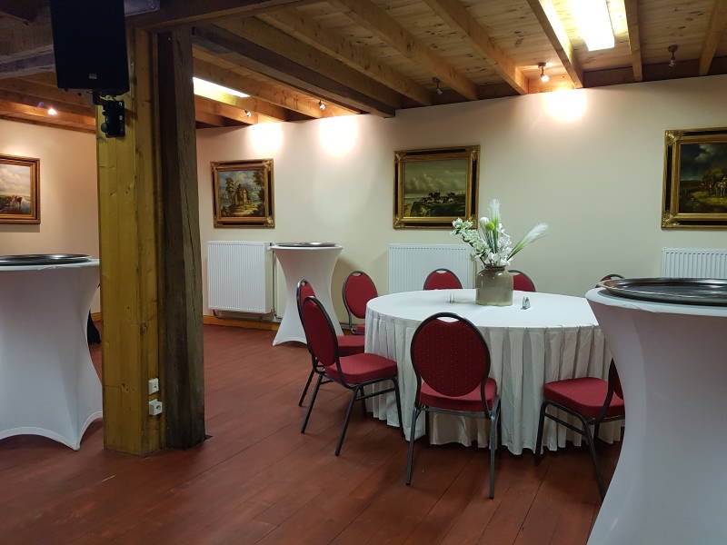 De feestzaal in het koetshuis van het kasteel is apart te huur voor een feestavond (max. 60-65 personen).